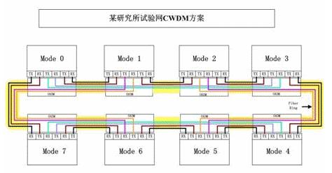 1.此方案采用CWDM和OADM技術,實現在一條環(huán)狀光纖上八個節(jié)點之間多業(yè)務傳輸。
