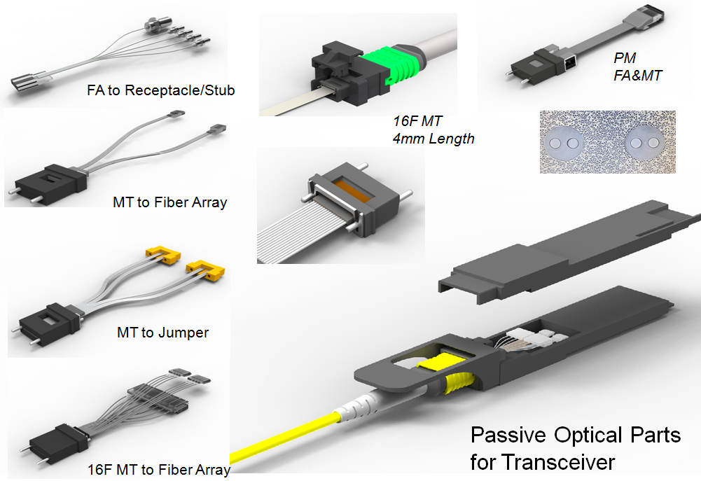在無源光收發(fā)組件方面,我們擁有卓越的多芯MT以及FA工程技術(shù),我們會(huì)結(jié)合自身經(jīng)驗(yàn)優(yōu)勢(shì),在客戶新產(chǎn)品研發(fā)階段就給于配合。挑戰(zhàn)高速光模塊對(duì)收發(fā)組件的高可靠性及嚴(yán)苛的尺寸公差要求。目前光卓通信已與多家大型的光收發(fā)模塊廠商建立了良好的合作關(guān)系,產(chǎn)品也從最初的25G、40G、100G延申到400G。