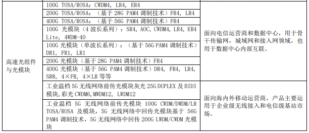 為滿足數(shù)據(jù)中心市場需求,公司集中美國、日本和上海的研發(fā)資源,大力開發(fā) 100G、200G 和 400G PAM4 光模塊產(chǎn)品,產(chǎn)品線已覆蓋 DR1/FR1 及 DR4/FR4/LR4 各種光模塊規(guī)格。公司自行開發(fā)的低成本 CWDM4 100G 光模塊已經(jīng)在若干客戶發(fā)貨。公司的 500m、2km 的數(shù)據(jù)中心級以及電信級 100G DR1 產(chǎn)品,已經(jīng)在 2020 年第一季度量產(chǎn)。