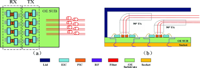 近期,來自中科院的一項(xiàng)針對100 Gbps垂直腔面發(fā)射激光器(VCSEL)陣列的高密度光耦合封裝研究取得了重要突破。該研究提出了一種90°彎曲二維光纖陣列(2D-FA),通過創(chuàng)新設(shè)計(jì)和高精度工藝,成功實(shí)現(xiàn)了高效光耦合,為CPO應(yīng)用提供了可行的解決方案。