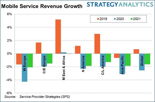ICC訊 Strategy Analytics最新發(fā)布的研究報告《Wireless Market Outlook: Competing Impacts of COVID-19 and 5G》指出,2020年,由COVID-19引發(fā)的經(jīng)濟衰退將使所有地區(qū)的無線服務(wù)收益下降,預(yù)計2021年僅會出現(xiàn)緩慢復(fù)蘇。
