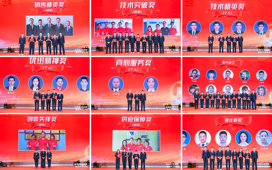 在20年的奮斗歷程中,優(yōu)迅股份有著許許多多感動(dòng)人心、催人奮進(jìn)的標(biāo)桿人物和典型事跡,會(huì)議對(duì)優(yōu)秀團(tuán)隊(duì)和個(gè)人進(jìn)行了隆重表彰。他們?cè)诩夹g(shù)、銷(xiāo)售、供應(yīng)、品質(zhì)、財(cái)務(wù)、后勤保障等不同領(lǐng)域體現(xiàn)了優(yōu)迅人的專業(yè)能力和奮斗精神,為優(yōu)迅的經(jīng)營(yíng)發(fā)展做出了卓越的貢獻(xiàn)。同時(shí),按照優(yōu)迅一直堅(jiān)守的傳統(tǒng),對(duì)公司10周年、20周年員工授予了榮譽(yù)金牌。劉伯坤副總經(jīng)理作為員工代表分享在優(yōu)迅二十年的感悟,從稚嫩到成熟,他們是優(yōu)迅辛勤培育的種子、是相伴成長(zhǎng)的伙伴,是星光下共同跋涉的人生風(fēng)景。