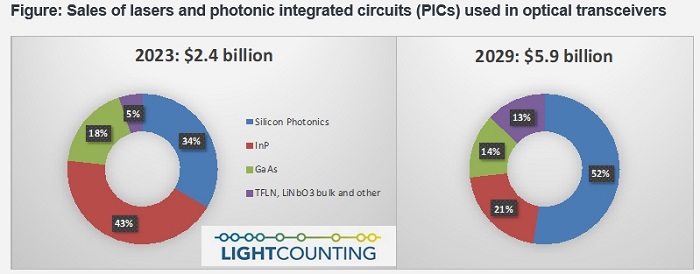 硅光子學(xué)將為T(mén)FLN提供集成平臺(tái)。如果將TFLN納入更廣泛的硅光子PIC定義中,到2029年,這些產(chǎn)品的銷售額將接近38億美元。