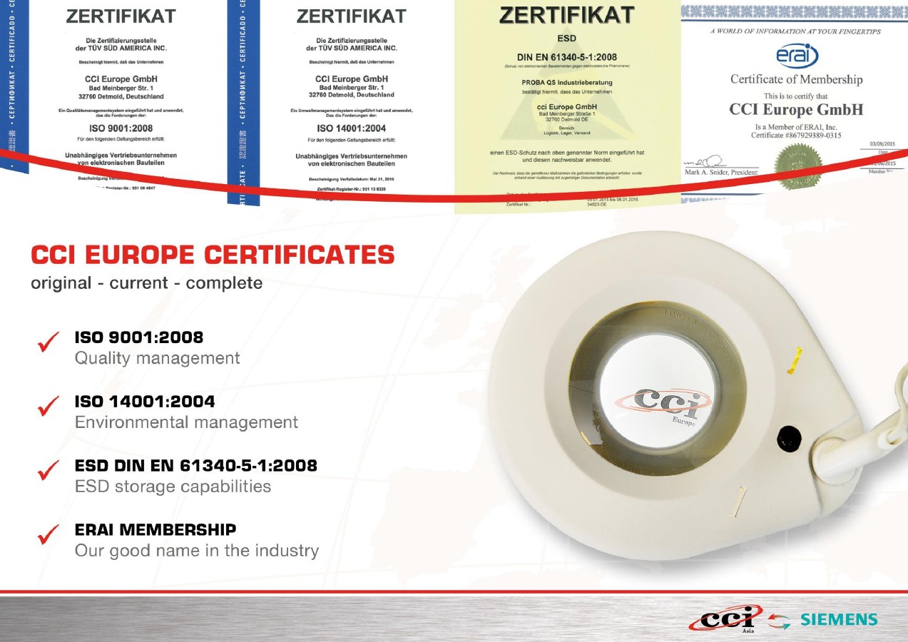 ISO9001:2008,ISO14001:2004,AS9120:2009,ANSI/ESD S20.20:2007,RoHS Certified, ERAI,1000萬(wàn)元產(chǎn)品質(zhì)量責(zé)任險(xiǎn)賠償能力