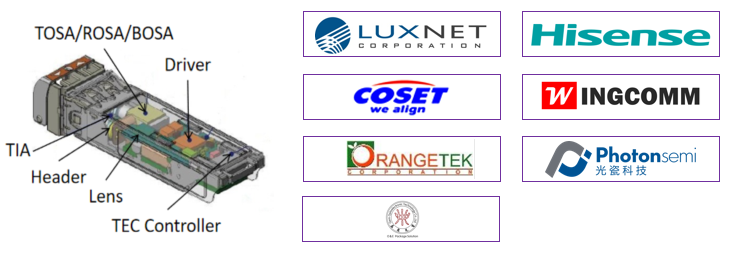 驅(qū)動(dòng)芯片:WINGCOMM(飛昂),提供單模25G LDD/LA/CDR集成主芯片和25G TIA的整套解決方案,國(guó)內(nèi)廠商在高端芯片領(lǐng)域的加入,能夠有效降低供應(yīng)風(fēng)險(xiǎn);
