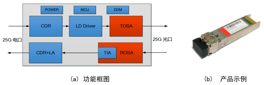 25Gb/s雙纖雙向灰光模塊功能框圖及產(chǎn)品示例如圖3所示。IEEE 802.3cc已完成25GbE單模光纖接口規(guī)范,CCSA已啟動(dòng)國內(nèi)行業(yè)標(biāo)準(zhǔn)化制定工作,預(yù)計(jì)2019年完成報(bào)批。