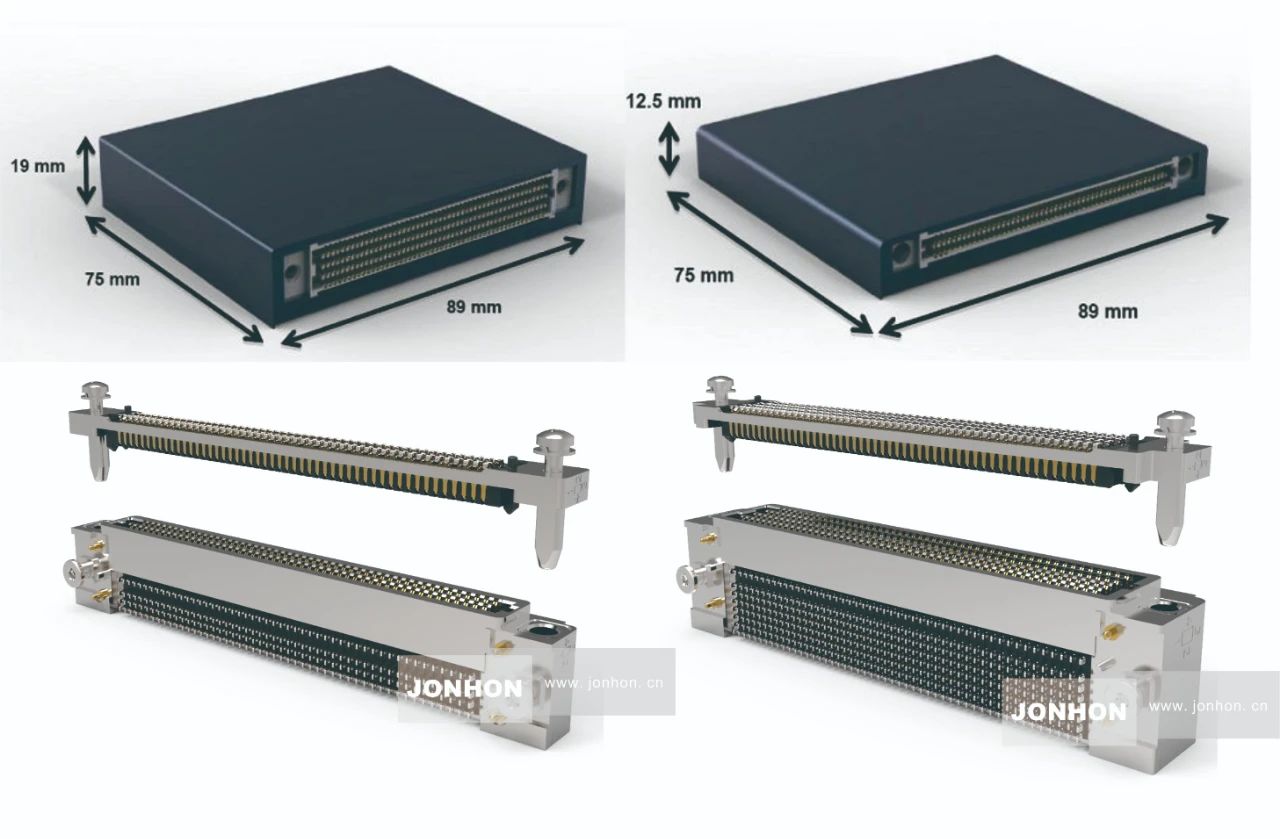 中航光電推出了符合VITA74標(biāo)準(zhǔn)的加固微型高速連接器,分別適用于VITA74標(biāo)準(zhǔn)12.5mm和19mm模塊厚度,并在此基礎(chǔ)上進(jìn)行集成化擴(kuò)展,具有高速率、高密度、模塊化、集成化、小型化、無纜化的特點(diǎn),可同時(shí)實(shí)現(xiàn)差分、射頻、光和電源等信號(hào)的集成化傳輸。