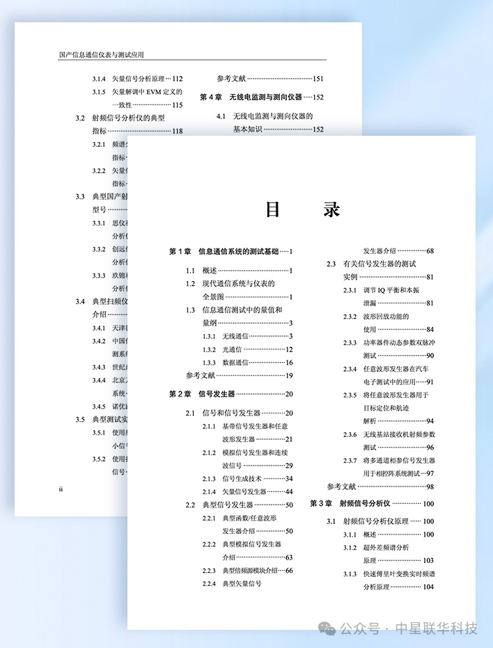 中星聯(lián)華作為國產(chǎn)信息通信儀表領(lǐng)域的代表性企業(yè)之一,受邀參與本書內(nèi)容編撰,旗下多款核心產(chǎn)品及系統(tǒng)收錄其中,展示了中星聯(lián)華在通信測(cè)試領(lǐng)域的技術(shù)實(shí)力與創(chuàng)新成果。