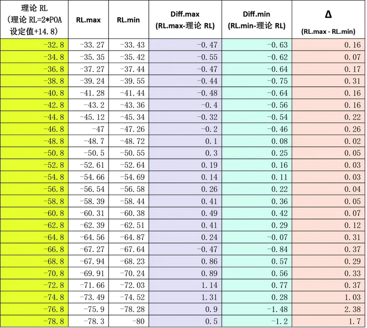 由此可以證明,維度科技的免纏繞插回損儀不僅測試范圍廣(最低可檢測-80dB),并測量精度高,測試值波動范圍Δ (RL.max - RL.min)穩(wěn)定。