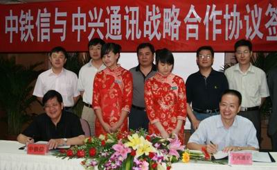 8月13日 ,中興通訊股份有限公司與中鐵信息工程集團(tuán)在蘭州簽署《戰(zhàn)略合作框架協(xié)議》(以下簡(jiǎn)稱《協(xié)議》),中興通訊副總裁兼企業(yè)網(wǎng)營(yíng)銷中心總經(jīng)理鐘宏與鐵道部信息中心主任兼中鐵信集團(tuán)董事長(zhǎng)吳建中出席了簽字儀式并分別代表雙方在協(xié)議上簽字。