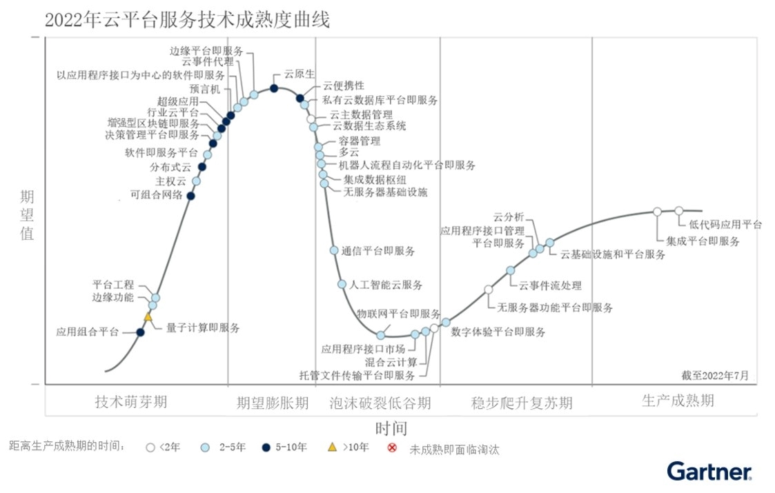 圖一、2022年云平臺服務技術成熟度曲線