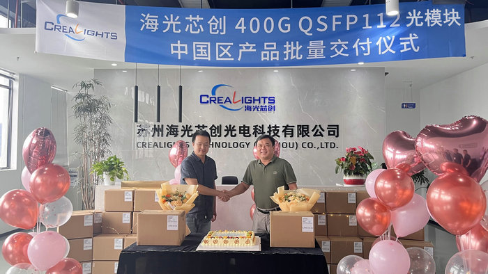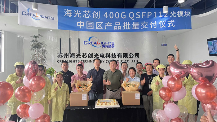 ICC訊 2023年7月28日,海光芯創(chuàng)400G QSFP112 光模塊量產(chǎn)交付儀式在海光芯創(chuàng)產(chǎn)業(yè)園區(qū)成功舉行。海光芯創(chuàng)董事長胡朝陽、副總經(jīng)理胡勇、項目組代表等出席本次儀式,共同見證海光芯創(chuàng)在光通信領(lǐng)域產(chǎn)品研發(fā)和技術(shù)創(chuàng)新的卓越成果。