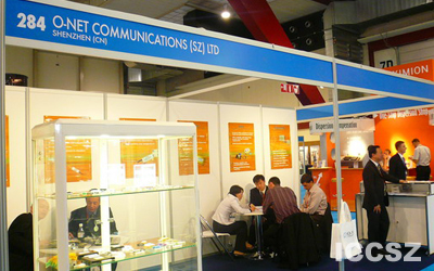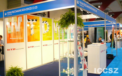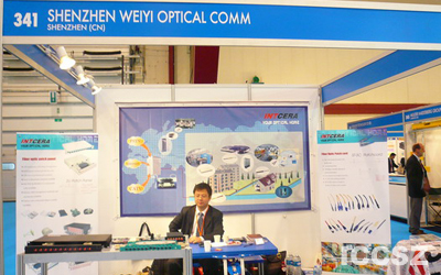 深圳威誼展臺(tái),展臺(tái)背景以FTTH布線圖和威誼主打產(chǎn)品為主