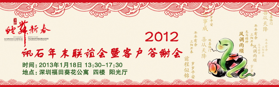 為了答謝各位會員在過去的一年里對訊石的支持,訊石信息咨詢(深圳)有限公司將于2013年1月18日在深圳福田區(qū)葵花公寓舉辦主題為感恩&重生的年末答謝會。這里有縱觀全年的市場報告、這里有熱烈的互動討論、這里有瘋狂的搞笑游戲、這里有精美貼心的小禮品……還在等什么快放下繁重的工作讓訊石帶您走一段輕松歡樂的旅程吧。