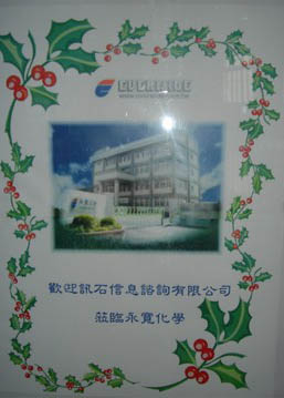 第三站:永寬化學股份有限公司 6月16日訊石團從臺北出發(fā)開往云林縣拜訪永寬化學股份有限公司。一路上碰上臺灣端午連假和下雨,路途耽擱了五個小時,下午三點多才到公司。但永寬總經(jīng)理和業(yè)務經(jīng)理的熱情招待使得大家都沒有疲倦的感覺。在座談介紹之后,團員實地參觀了工廠特別是永寬先進的測試設備,之后雙方又進一步交流和溝通。公司還特意為遠道而來的大陸團員準備了一份厚禮,特別定制的《從空中看臺灣》畫冊。