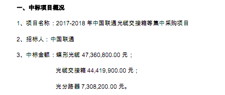 華脈科技指出,中國聯(lián)通2017-2018年光纜交接箱等ODN產(chǎn)品集采預(yù)計(jì)滿足一年的需求,產(chǎn)品包括蝶形光纜、光纜交接箱和光分路器。