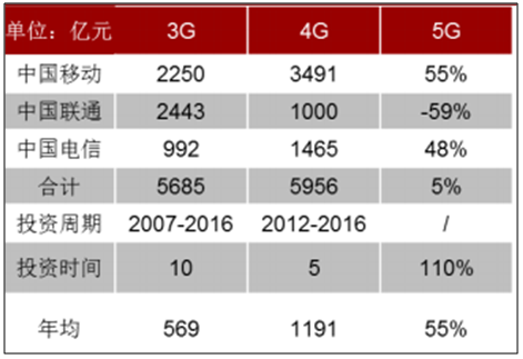 三大運(yùn)營商 3G、4G 投資額