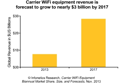*2013年上半年,運營商WiFi收入超過上一年度總額的2/3;