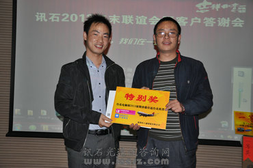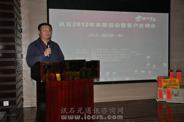 【訊石光通訊咨詢網(wǎng)】訊石2012年末聯(lián)誼會暨客戶答謝會今天下午(1月18日)在深圳福田葵花公寓圓滿舉行。本次活動由訊石精心策劃、傾力打造,并獲得了珠海飛宇光電科技有限公司、深圳市微納光通信設(shè)備有限公司以及深圳騰天昊宇光通信、深圳市易飛揚通信技術(shù)有限公司的贊助和支持。會議共迎來嘉賓80多人參加,氣氛異常熱烈,于今天下午18點圓滿結(jié)束。