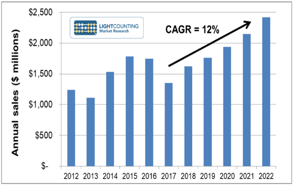 圖:2012-2022年接入網(wǎng)光器件銷售情況