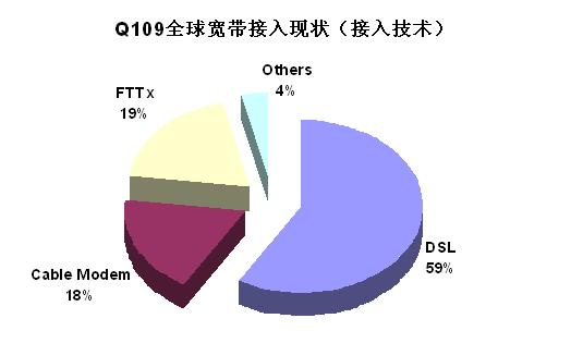 寬帶技術(shù),市場份額為64%。其次為線纜(有線電視)接入,市場份額為20%。