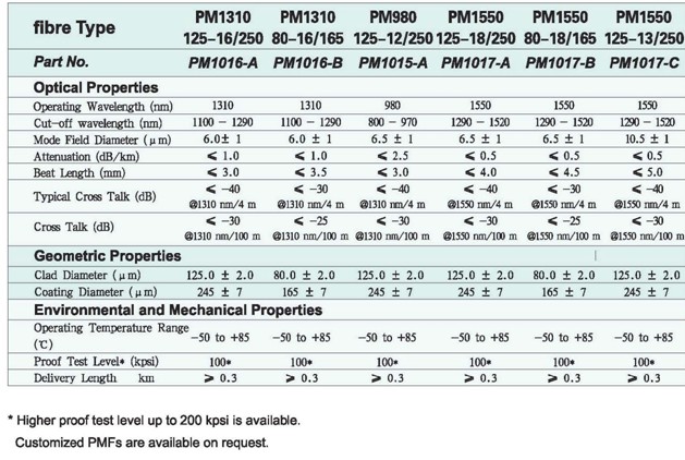 產(chǎn)品特性:雙折射率效應(yīng)高、保偏性能好、幾何一致性好、衰減低、彎曲穩(wěn)定性好、雙紫外涂覆層結(jié)構(gòu)、環(huán)境穩(wěn)定性和可靠性高