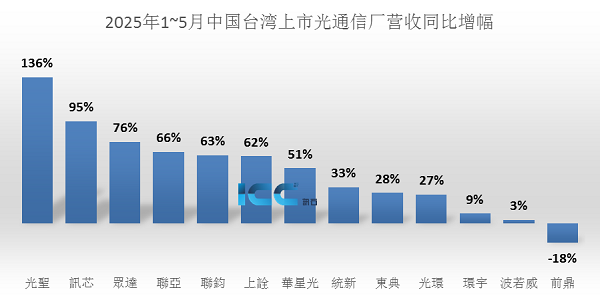 從最新公布的5月營(yíng)收來看,臺(tái)灣光通訊族群表現(xiàn)持續(xù)亮眼。光圣(136%)、訊芯(95%)、眾達(dá)(76%)、聯(lián)亞(66%)四家增幅超65%,直接受益于AI算力爆發(fā)帶動(dòng)的CPO技術(shù)需求。聯(lián)鈞(63%)、上詮(62%)、華星光(51%)中堅(jiān)梯隊(duì)增幅均超50%,反映800G/1.6T光模塊放量。增幅超50%的7家企業(yè)中,6家(光圣/訊芯/眾達(dá)/聯(lián)亞/上詮/華星光)均深度布局CPO技術(shù),驗(yàn)證硅光子已成為光通信產(chǎn)業(yè)增長(zhǎng)的核心引擎。