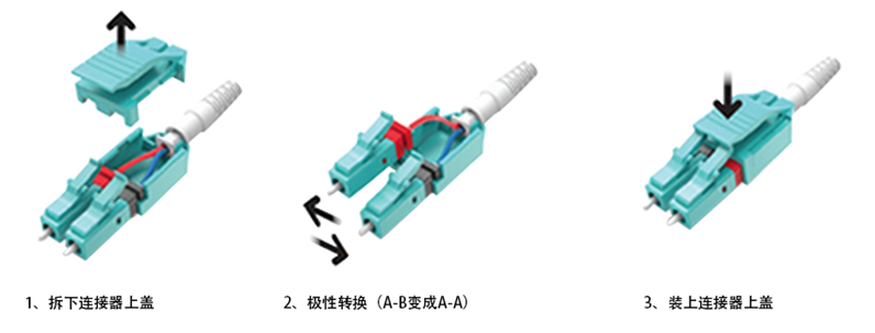 2、LC一管雙芯光纖跳線極性轉(zhuǎn)換實(shí)現(xiàn)方式