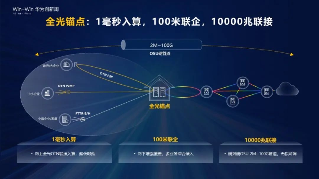 全光錨點(diǎn)把算力中心和企業(yè)家庭連接起來后,從最末端的終端一直到算力中心,提供端到端的OSU彈性硬管道能力,帶寬可以從2M到100G無損可調(diào),實現(xiàn)泛在的10Gbps萬兆聯(lián)接。
