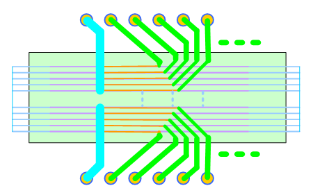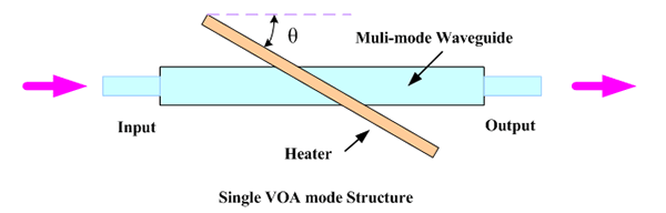 1ch PLC-VOA原理如圖3所示,通過改變每通道電流,實現(xiàn)通道熱場變化,從而改變波導折射率,實現(xiàn)光功率的衰減;PLC-VOA Array 內部結構如圖4所示。