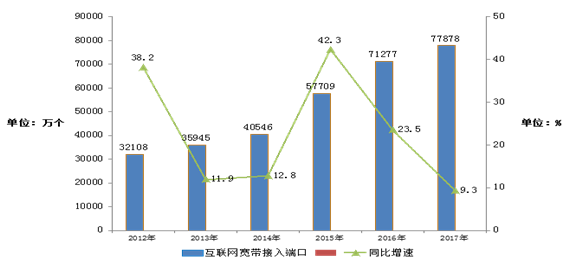 2012-2017年互聯(lián)網(wǎng)寬帶接入端口發(fā)展情況