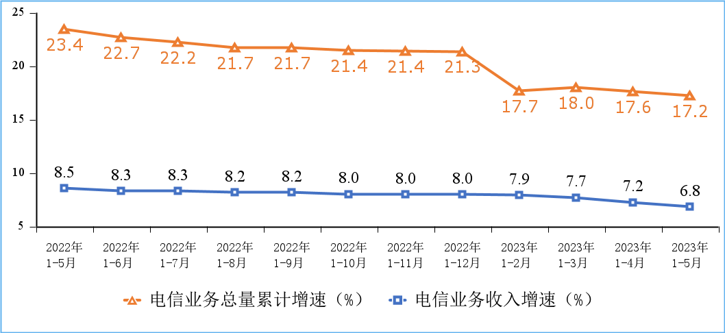 圖1 電信業(yè)務(wù)收入和電信業(yè)務(wù)總量累計增速