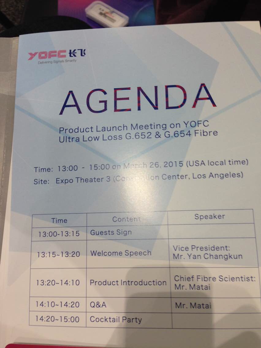 ICCSZ訊(編輯:Debi)一年一度的美國(guó)光纖通訊展覽會(huì)及研討會(huì)(OFC)終于接近尾聲了。OFC 2015 于2015年3月24-26日在美國(guó)加州洛杉磯會(huì)展中心舉行,其中,技術(shù)研討會(huì)于3月22-26日舉行。洛杉磯時(shí)間3月26日為展會(huì)最后一天,訊石客戶從現(xiàn)場(chǎng)傳回以下圖片,敬請(qǐng)欣賞。特別鳴謝康寧陳皓經(jīng)理等從現(xiàn)場(chǎng)傳回的圖片,也非常歡迎參展過(guò)的朋友繼續(xù)為訊石提供更多圖片等信息!同時(shí)祝返程的朋友一路平安!