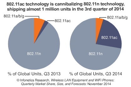 *在過(guò)去的一年中,802.11ac接入滲透率幾乎上漲10倍,三季度出貨量接近100萬(wàn)。