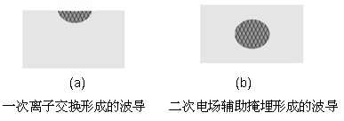 離子交換的電化學工藝主要包括:一次離子交換、二次電場輔助掩埋法,其形成的波導截面示意圖參見圖2所示。