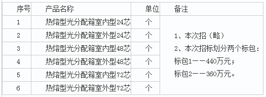 項目名稱:2015年光分配箱供應商備貨采購招標