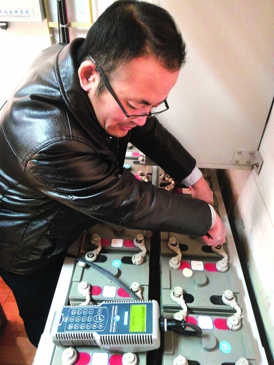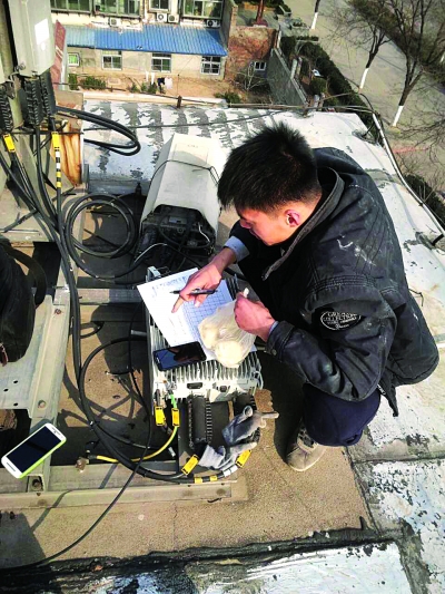 山東鐵塔成立了17個(gè)電池專家組,全力保障和全速推進(jìn)資產(chǎn)清查工作。圖為電池專家組成員賈國(guó)芳在一絲不茍地檢查基站電池。