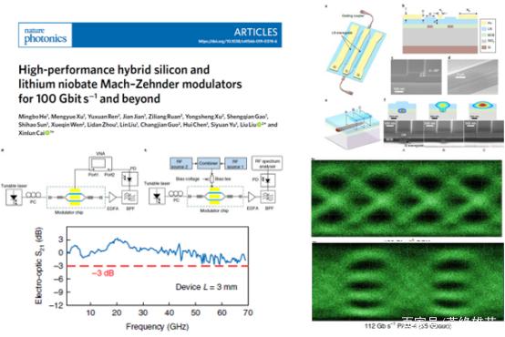 中山大學(xué)蔡新倫教授和華南師范大學(xué)劉柳教授團(tuán)隊(duì)做的新型大帶寬、高速片上LN調(diào)制器(SiP+LN),獲得70GHz帶寬,實(shí)現(xiàn)超過100Gb/s速率傳輸。