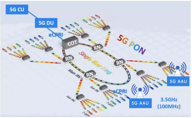 與過去3G、4G和FTTH的光分配網(wǎng)絡(luò)相互獨立不同,5G-PON是一個全融合的前傳網(wǎng)絡(luò),它為5G、4G和FTTH有線寬帶提供統(tǒng)一的光分配網(wǎng)絡(luò)。