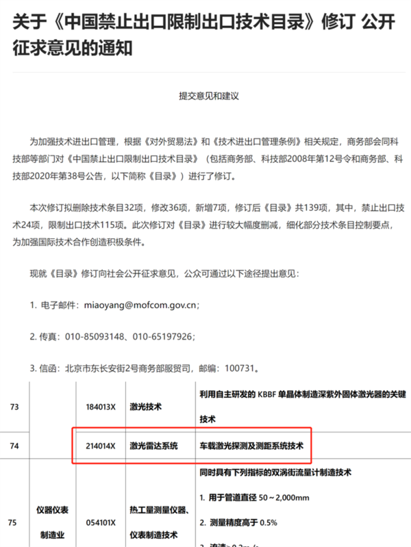 商務(wù)部擬將激光雷達(dá)等技術(shù)列入禁止限制出口目錄