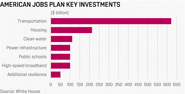 拜登定于周三晚些時候在匹茲堡公布其2萬億美元的 "美國就業(yè)計劃(American Jobs Plan)"。這份期待已久的基礎(chǔ)設(shè)施和就業(yè)計劃包含了對寬帶擴張、半導(dǎo)體制造以及公共交通和幫助消費者購買電動汽車等其他一系列利益的資助。