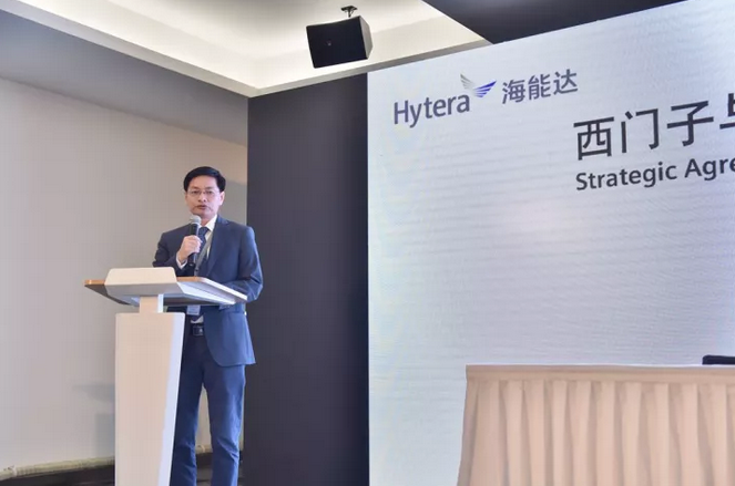 海能達(dá)高級(jí)副總裁曾華、西門子(中國(guó))有限公司執(zhí)行副總裁王海濱代表雙方公司簽署戰(zhàn)略合作協(xié)議。