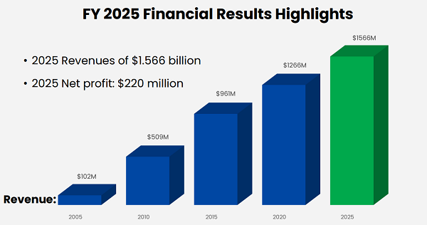 2025年全年,公司營收為15.7億美元,較2024年的14.4億美元增長9%。