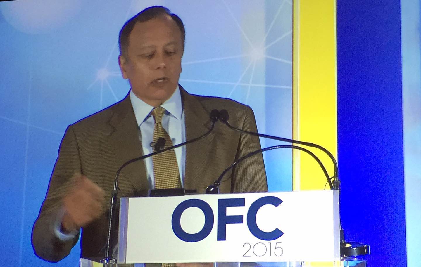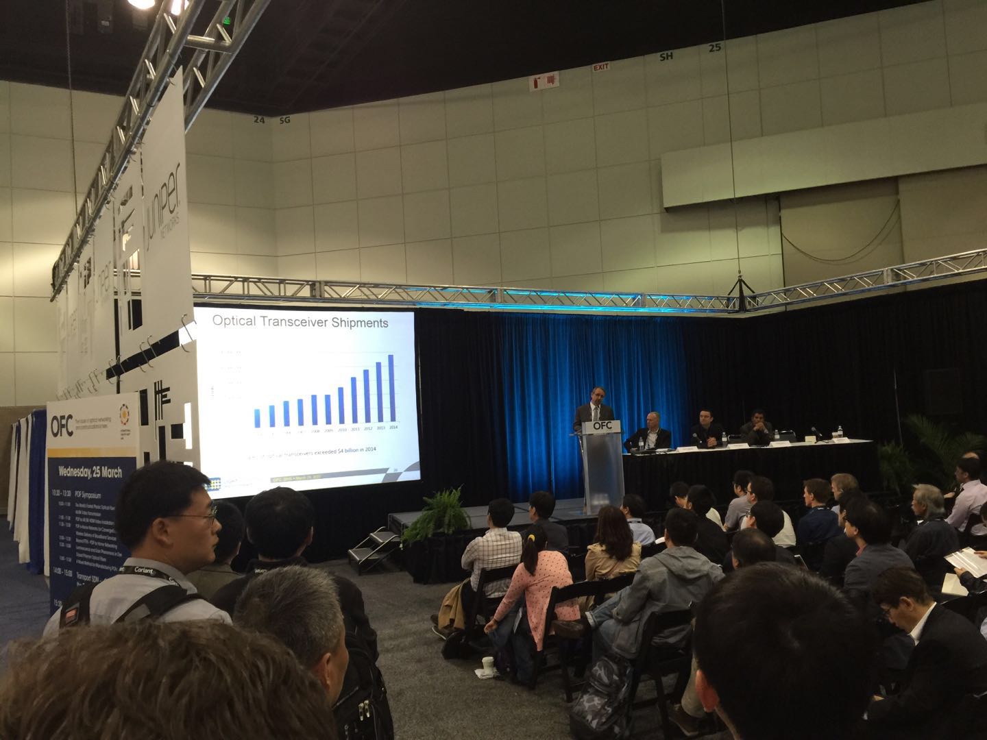 ICCSZ訊(編輯:Debi)美國光纖通訊展覽會(huì)及研討會(huì)(OFC) 于2015年3月24-26日在美國加州洛杉磯會(huì)展中心舉行,其中,技術(shù)研討會(huì)于3月22-26日舉行。本屆展會(huì)中國大陸及臺(tái)灣共117家企業(yè)參展,同比2014年增長19%。洛杉磯時(shí)間3月24日,訊石客戶從現(xiàn)場傳回以下圖片,敬請欣賞。特別鳴謝昂納華博、康寧陳皓經(jīng)理、廣州奧鑫市場部經(jīng)理劉琳等從現(xiàn)場傳回的圖片,也非常歡迎身在現(xiàn)場的您繼續(xù)為訊石提供更多圖片等信息!