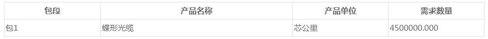 投標人應根據(jù)招標文件的要求填報供應中國移動蝶形光纜產(chǎn)品的每月供貨承諾量,單芯普通蝶形光纜的月供貨承諾量需達到每月平均6萬芯公里。