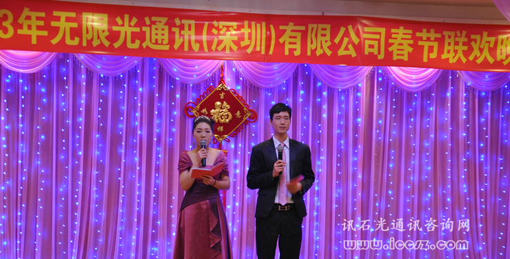 2013年1月26日晚無限光通訊(深圳)有限公司在新富門魚翅海鮮酒樓舉辦了2013年春節(jié)聯(lián)歡晚會,無限光全體員工、客戶、供應(yīng)商共三百余人歡聚一堂迎接新春的到來,訊石作為受邀媒體也參加了這次盛會。