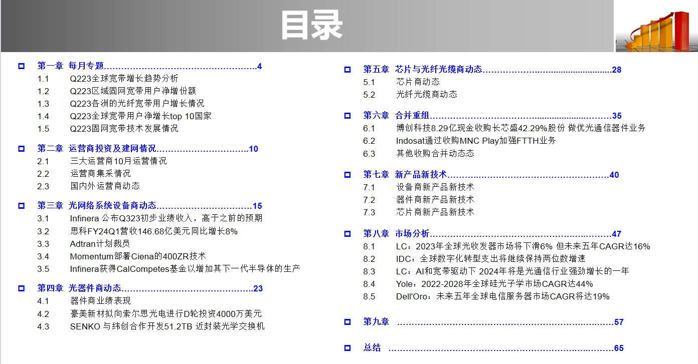 ICC訊 訊石 2023年11月《全球光通訊市場(chǎng)動(dòng)態(tài)》專題月報(bào)出刊,會(huì)員公司可以通過(guò)郵件接收。