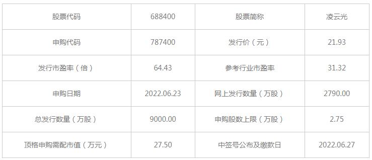 ICC訊 6月23日,凌云光(688400.SH)開啟申購,申購價為21.93元/股,申購上限為2.75萬股,市盈率64.43倍,屬于上交所科創(chuàng)板,中金公司(601995)為其獨家保薦人。