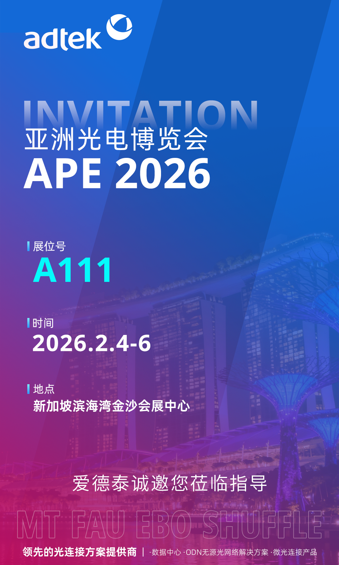 ICC訊 當(dāng)全球光電產(chǎn)業(yè)的目光再度聚焦于“東方十字路口”,一場鏈接未來算力與通信前沿的行業(yè)盛會——亞洲光電博覽會(APE 2026)將于2026年2月4日至6日在新加坡金沙會議展覽中心L1展廳隆重舉行。愛德泰誠摯邀請全球行業(yè)伙伴蒞臨現(xiàn)場,共同探索光電互聯(lián)的創(chuàng)新未來。