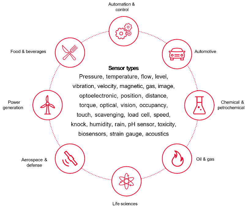 圖 1. 不同類型傳感器和主要傳感器市場的示例